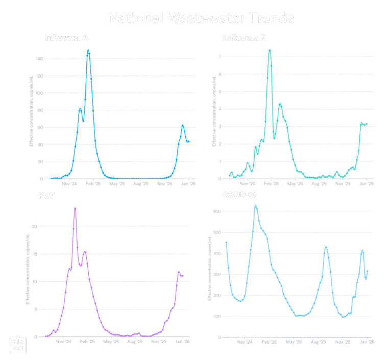 COVID-19, Influenza, and RSV Wastewater Monitoring in the U.S. | Week of January 10, 2026 Marisa Donnelly, PhD January 16, 2026 Read more