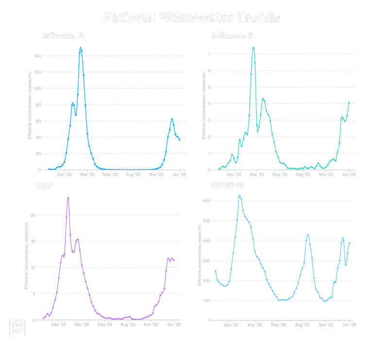 COVID-19, Influenza, and RSV Wastewater Monitoring in the U.S. | Week of January 24, 2026 Marisa Donnelly, PhD January 30, 2026 Read more
