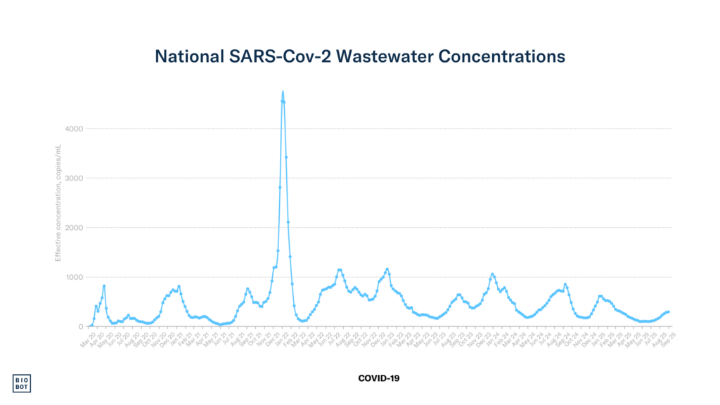 National SARS-CoV-2 concentrations are increasing.