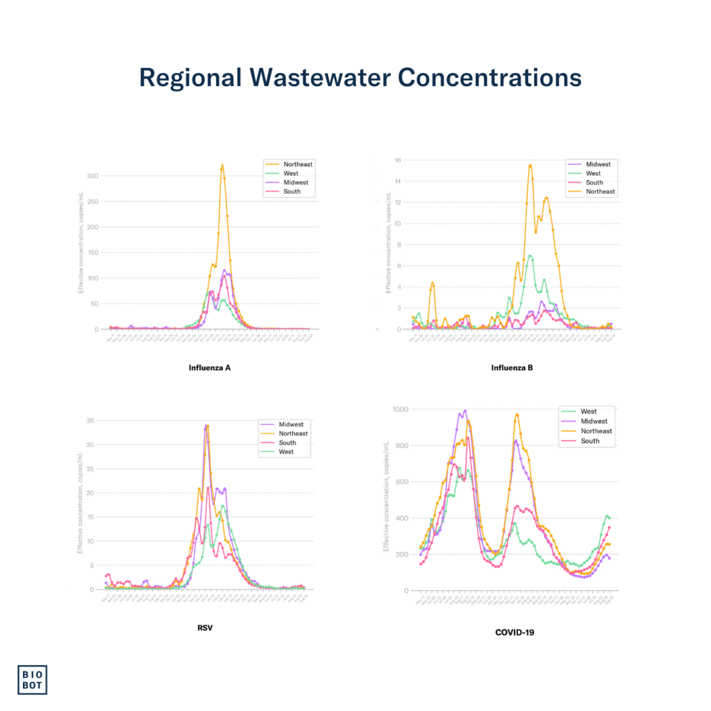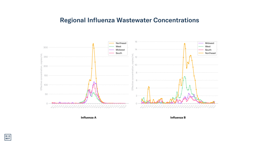 We continue to monitor the evolving H5N1 influenza virus situation, and can now test samples specifically for H5 (including H5N1) — see our blog here and please reach out to hello@biobot.io if interested. A quick reminder that Biobot’s influenza A assay described in this report includes the H5N1 influenza subtype, which is an influenza A virus, but does not distinguish between the different subtypes of influenza A (e.g. H5N1 vs H1N1). We will share any important updates as we have them via Bluesky and in the risk reports.