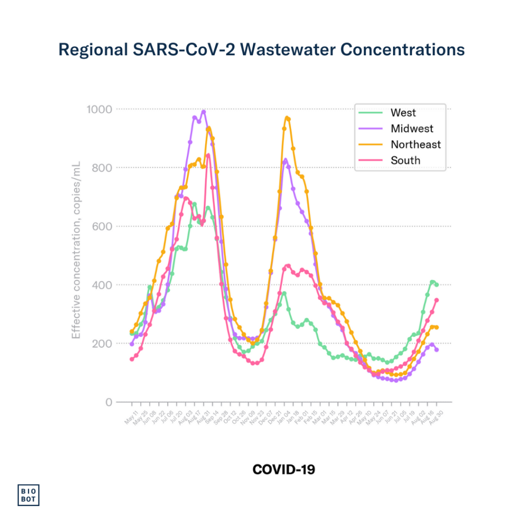 COVID-19: SARS-CoV-2 concentrations are slightly decreasing in the Midwest.