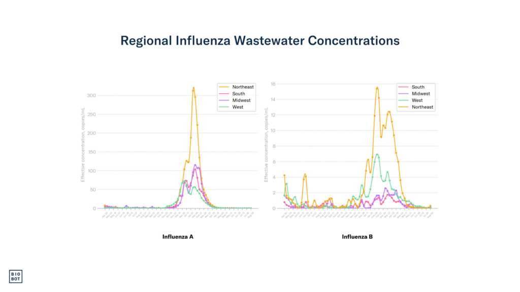 Throughout the respiratory season, we analyze wastewater for the presence of respiratory syncytial virus (RSV) and influenza virus (types A and B). Together with COVID-19, these three pathogens are outsized contributors to our seasonal respiratory illness burden. In this data series, we’ll guide you through the wealth of data we’ve gathered from our Biobot Network of national sampling sites, aiming to shed light on emerging trends in respiratory virus activity and community viral load. Our goal is to equip you with information to make informed decisions.