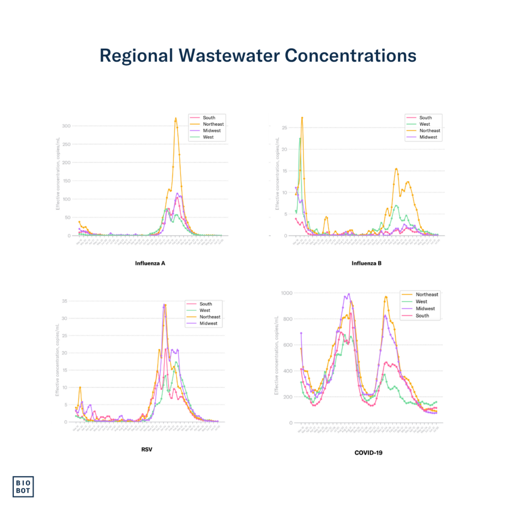 We continue to monitor the evolving H5N1 influenza virus situation, and can now test samples specifically for H5 (including H5N1) — see our blog here and please reach out to hello@biobot.io if interested. A quick reminder that Biobot’s influenza A assay described in this report includes the H5N1 influenza subtype, which is an influenza A virus, but does not distinguish between the different subtypes of influenza A (e.g. H5N1 vs H1N1). We will share any important updates as we have them via Bluesky and in the risk reports.
