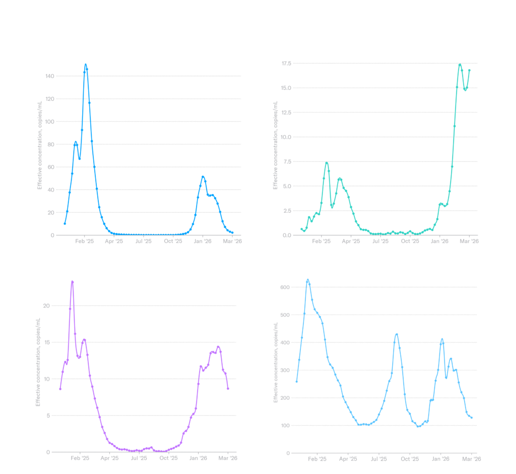 COVID-19, Influenza, and RSV Wastewater Monitoring in the U.S. | Week of March 28, 2026