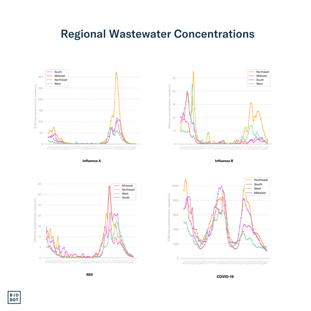 Influenza: Influenza A concentrations are holding steady at very-low levels in the Northeast, while influenza B is declining.