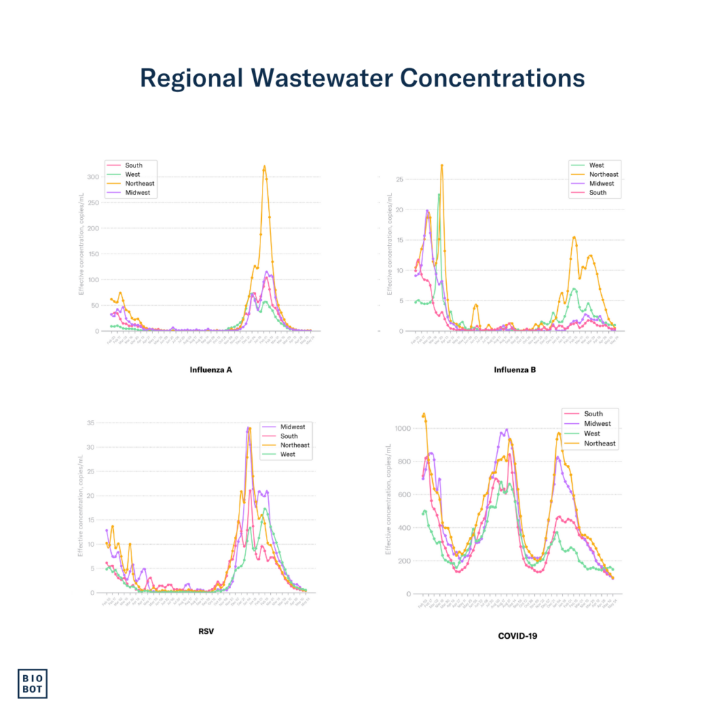We continue to monitor the evolving H5N1 influenza virus situation, and can now test samples specifically for H5 (including H5N1) — see our blog here and please reach out to hello@biobot.io if interested. A quick reminder that Biobot’s influenza A assay described in this report includes the H5N1 influenza subtype, which is an influenza A virus, but does not distinguish between the different subtypes of influenza A (e.g. H5N1 vs H1N1). We will share any important updates as we have them via Bluesky and in the risk reports.