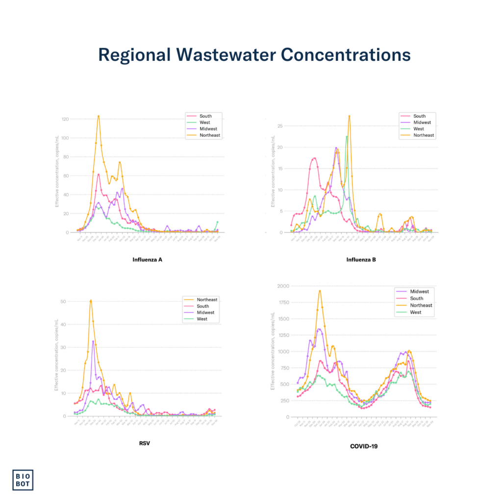 We continue to monitor the evolving H5N1 influenza virus situation. As we do, a quick reminder that Biobot’s influenza A assay detects the H5N1 influenza subtype, which is an influenza A virus, but does not distinguish between the different subtypes of influenza A (e.g. H5N1 vs H1N1). Thankfully, the only increases in influenza A we’ve observed are in line with normal seasonal trends. We will share any important updates as we have them via Twitter and in the risk reports.