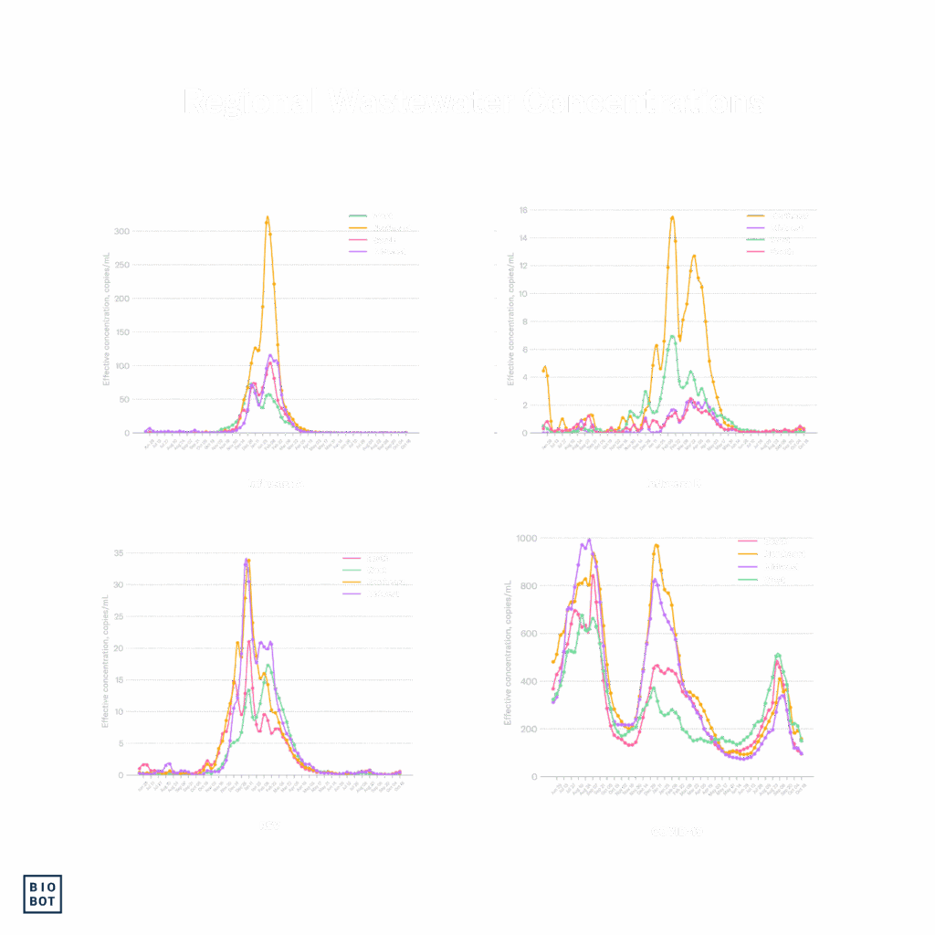 We continue to monitor the evolving H5N1 influenza virus situation, and can now test samples specifically for H5 (including H5N1) — see our blog here and please reach out to hello@biobot.io if interested. A quick reminder that Biobot’s influenza A assay described in this report includes the H5N1 influenza subtype, which is an influenza A virus, but does not distinguish between the different subtypes of influenza A (e.g. H5N1 vs H1N1). We will share any important updates as we have them via Bluesky and in the risk reports.
