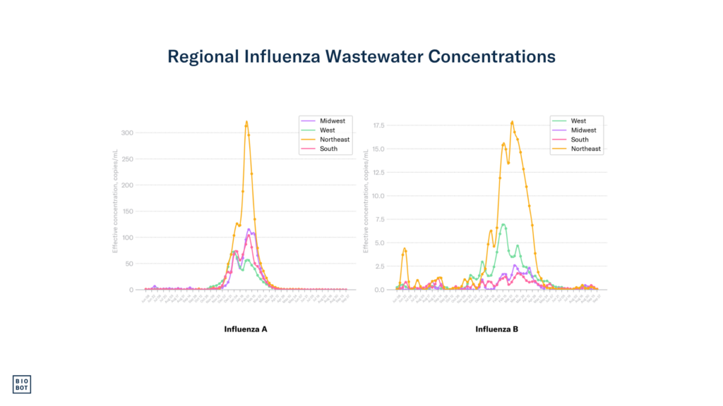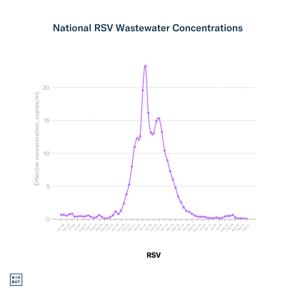 Throughout the respiratory season, we analyze wastewater for the presence of respiratory syncytial virus (RSV) and influenza virus (types A and B). Together with COVID-19, these three pathogens are outsized contributors to our seasonal respiratory illness burden. In this data series, we’ll guide you through the wealth of data we’ve gathered from our Biobot Network of national sampling sites, aiming to shed light on emerging trends in respiratory virus activity and community viral load. Our goal is to equip you with information to make informed decisions.